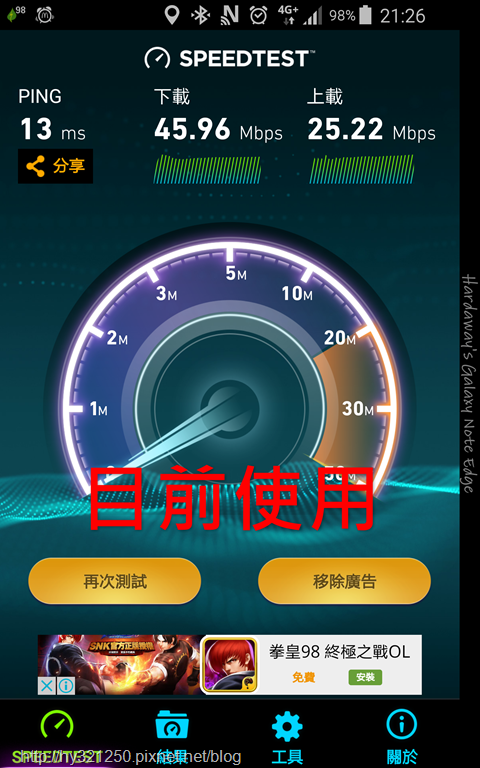 使用Speedtest測試上網速度,經過幾天不同時間測試後,在自己家裡測得的最低與最高上下傳速度,落差並不大,對比自己目前使用的這家速度,上下傳速度也都比較快。