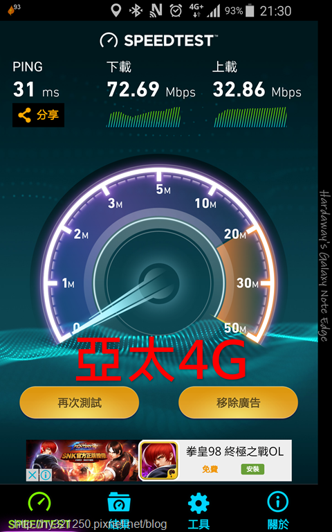 雖然這張4G SIM卡只能拿來4G上網,但趁此機會可以試試自己家裡附近的亞太4G上網速度。
