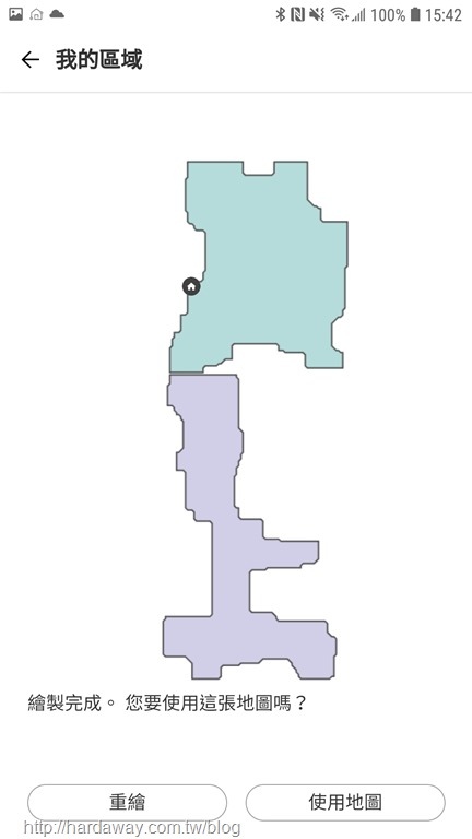 透過繪製地圖,也知道這台LG拖地機器人以快速清潔模式將全部區域拖過一次約60分鐘,加上以水量控制為水量中的耗水量,如果是平日白天沒人在家時,一天讓它上午、下午各拖一次是沒有問題的,所以就設定兩個排程,讓LG CordZero ThinQ M9星期一到星期五時間到自動拖地,而且因為有繪製地圖了,如果有需要的話,也可設定只拖指定區域。