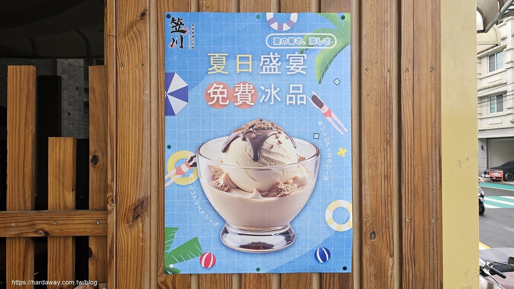 進店之前,看到貼在門口的這張海報說明會提供免費冰品,後來跟笠川無菜單懷石料理服務人員確認,只要是8月底前來用餐都會有哦!