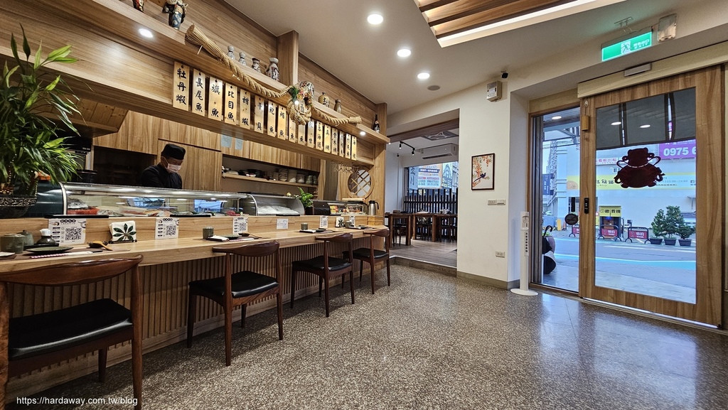 用餐區總共有三個樓層的笠川無菜單懷石料理,一樓這裡有吧台座位跟四人桌座位可供選擇。