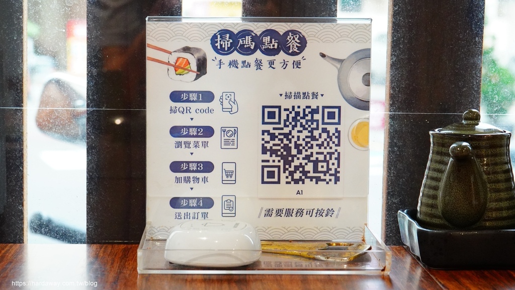 笠川無菜單懷石料理店裡提供無菜單懷石料理、商業定食、套餐、合菜,還有各式單點日式料理,而決定好要吃什麼之後,就依照桌上小立牌的說明線上點餐囉…