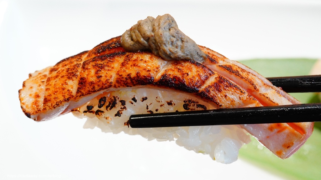 實際吃過後,這三貫握壽司中個人最喜歡的是炙燒鮪魚握壽司,因為魚肉口感蠻細緻的,並且帶著炙燒香氣,加上蝦膏的風味,會讓人特別有印象啦!