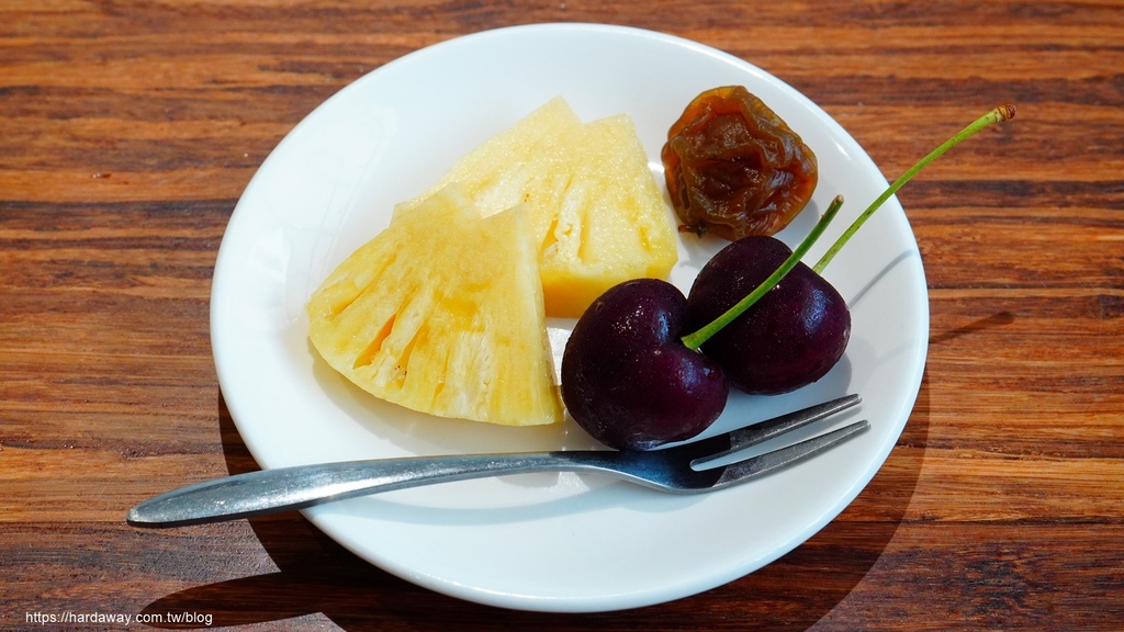 享用完綜合炙壽司,差不多快飽了,接著把還留著水果吃一下。