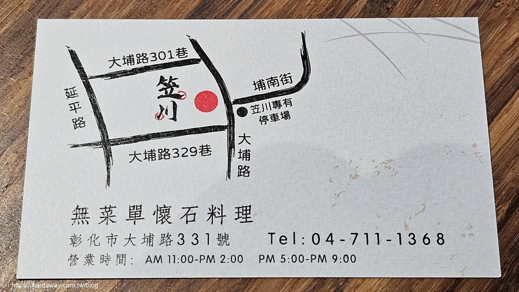 這次下彰化洽公順道去用餐的笠川無菜單懷石料理,店面位置是在大埔路上,而斜對面就是大埔黃昏市場,如果是開車來的話,這間彰化日本料理餐廳也有特約停車場可供停車。