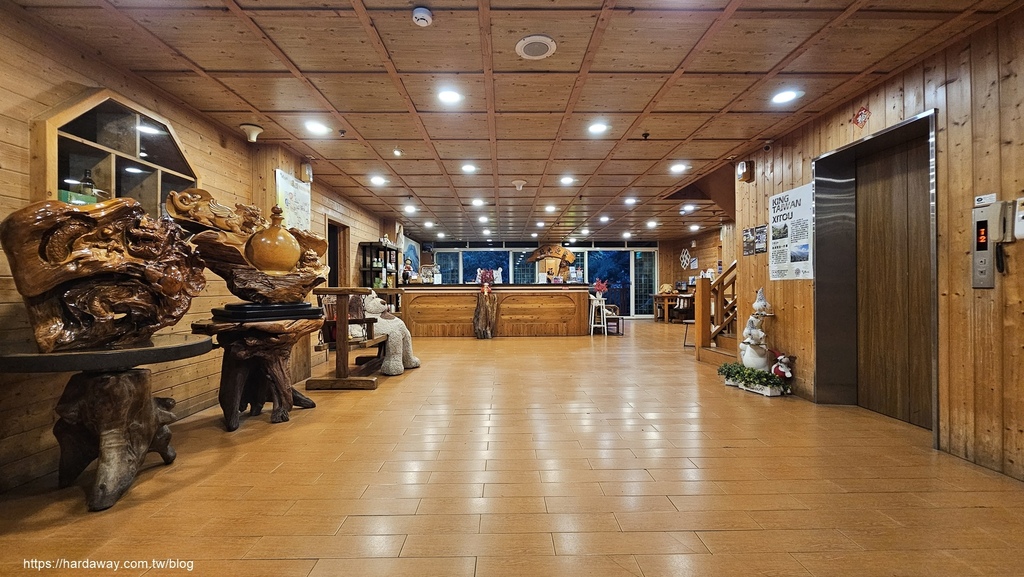 結合茶行、餐廳跟民宿的金台灣山莊,由於建築使用大量木材,因此走進大廳時,自己就覺得有一種說不出來的舒服感受。