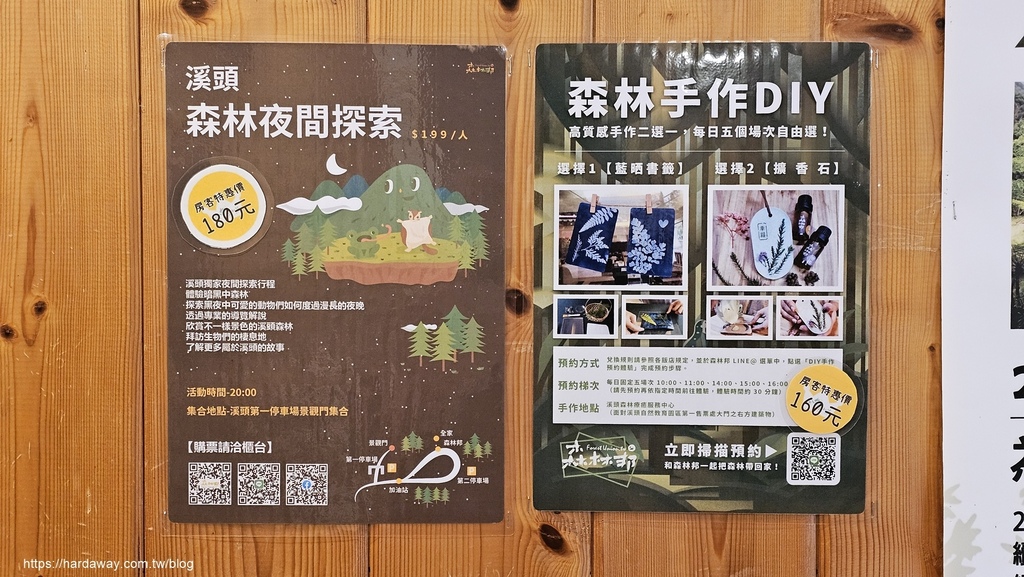 如果有需要溪頭森林遊樂區門票、鳳凰谷鳥園門票,還是想參加溪頭森林夜間探索或森林手作DIY,都可跟櫃臺的服務人員洽詢。