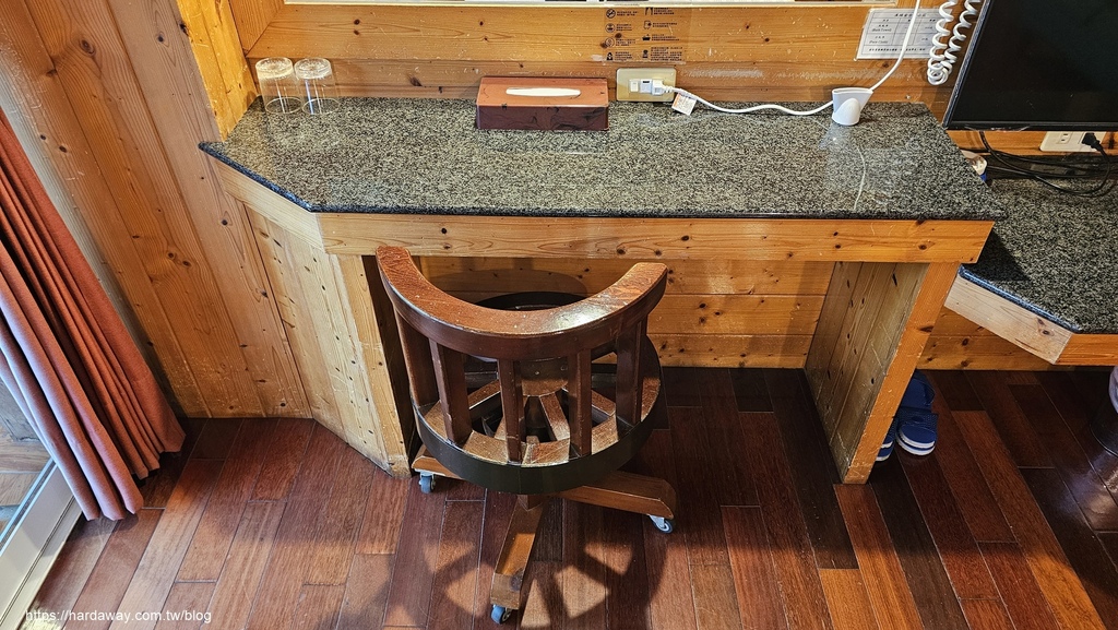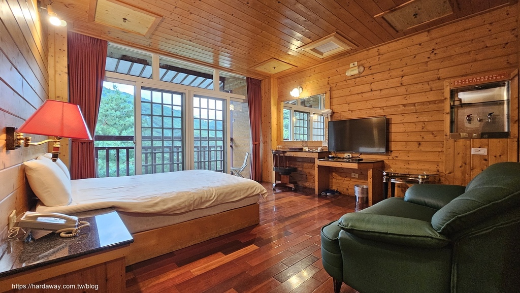 我們這次住宿的房型,是以純天然杉木打造的原木景觀雙人房,因此進到房內就聞到淡淡的木頭香氣。