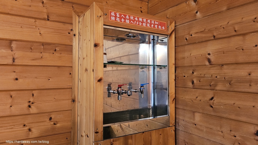 房內備品部分,比較特別是沒有提供電熱水壺,而是直接設置有冷、熱水的飲水機。