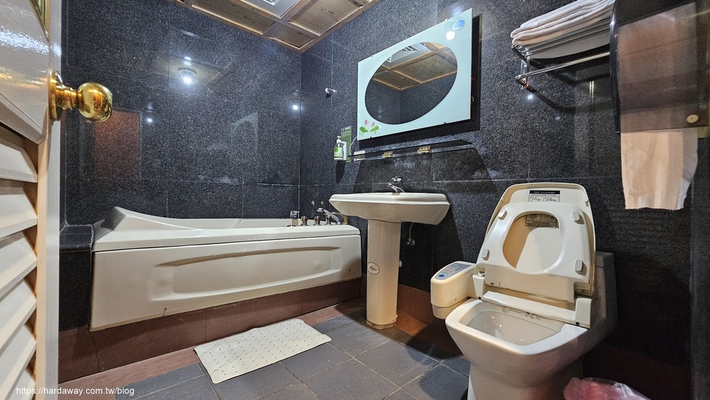 浴室部分,除了有浴缸外,馬桶部分,也有裝免治馬桶,讓入住房客上廁所能更為舒適。