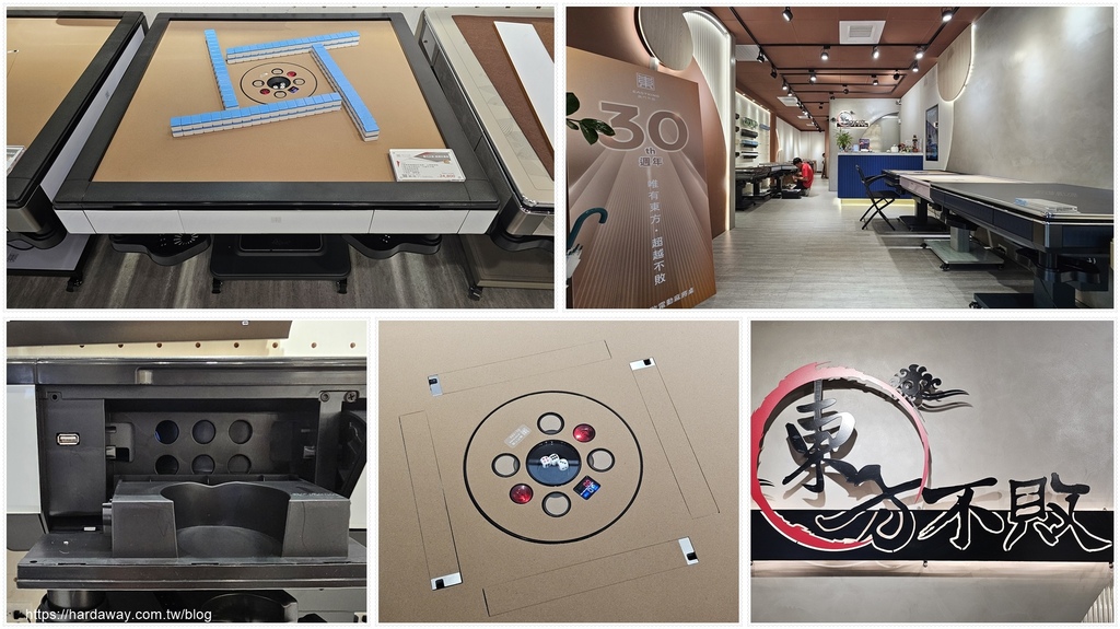 當天進到店裡,馬上看到「唯有東方,超越不敗」的30週年看板,以及多款展示販售的電動麻將桌,而往裡面走過去,還有陳列麻將相關周邊商品可以選購。